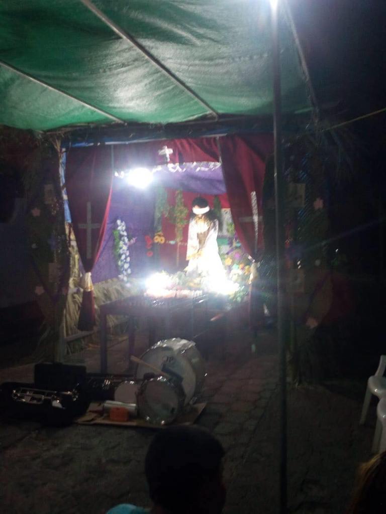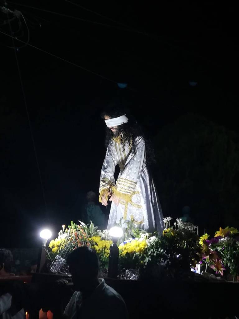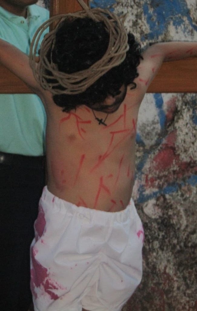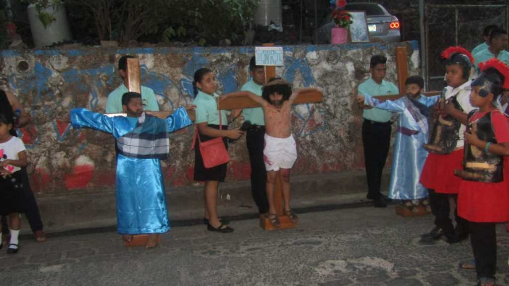 Lunes Santo (este día se celebra el Viacrucis dramatizado con niños (siendo estos últimos años la excepción, debido al Virus de COVID-19) donde se va meditando en cada estación sobre el camino de dolor, no tanto el que vivió hace siglos, sino el que sigue viviendo hoy especialmente en los niños que más sufren otros hermanos comentan que antes este día se pedía por las animas, por los hermanos que han fallecidos y se pido por el descanso eterno de cada uno de ellos.