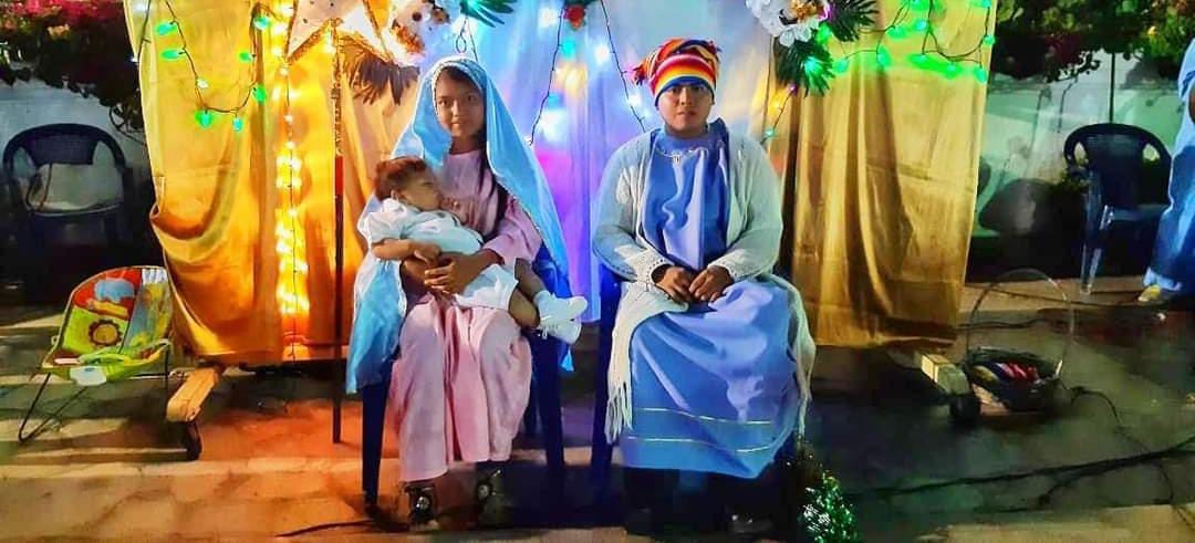 Al llegar a la casa que los recibiría las puertas de esta estaban cerradas es ahí donde se daba inicio a pedir posada cantando el canto “versos para pedir posada” y los que están adentro de la casa contestaban en el trascurso del canto el personaje de San Jose tocaba tres veces la puerta, al finalizar el canto el dueño del hogar abría la puerta y los visitantes entraban cantando “Entren santos peregrinos, peregrinos, reciban este rincón. Y aunque es pobre la morada, la morada, se las doy de corazón. Cantemos con alegría, alegría, todos al considerar. Que Jesús, José y María y María nos vinieron hoy a honrar” y se inicia el relato de las escenas entre ellas: La anunciación a María, la visita del Ángel a Zacarías, la visita de María a Santa Isabel, el nacimiento de Juan el Bautista, la visita del Ángel a San José, el nacimiento del Niño Jesús, La visita de los Reyes Magos, la Huida a Egipto, todos los personajes iban vestidos de acuerdo al personaje que realizaba. Al final del relato se hacía la oración final y se cantaban villancicos entre ellos “Antón Piruriruriru”, “Los Peces en el río”, “Arre Borreguito”, Campana sobre Campana, “Ay del Chiquirritín” entre muchos más. El día 23 de diciembre todo este relato se llevaba a cabo en el atrio de la parroquia, haciendo lo antes mencionado y al finalizar se realizaba el baile del niño Dios agradeciendo por estar vivos y darnos esperanza en el año venidero.