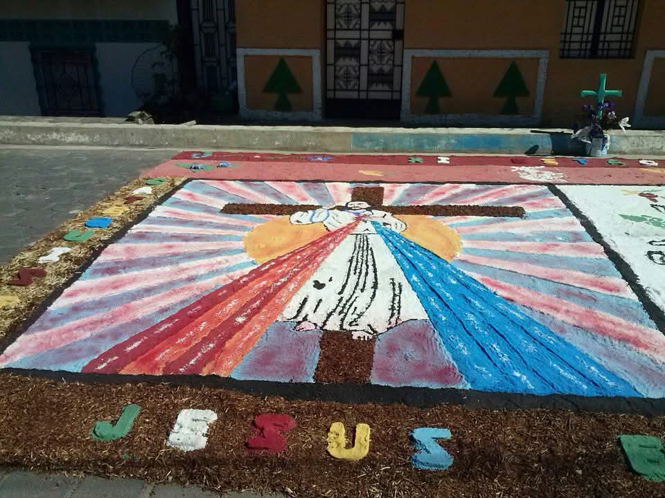Dentro de esta misma hora se realizan las alfombras elaboradas con sal teñida, flores y granos básicos, entre otros. Esta tradición, nacida en los años 70, es una mezcla de arte y espiritualidad. Cada diseño representa escenas bíblicas y es realizado por familias, comunidades o asociaciones; es un trabajo colaborativo que puede durar toda la noche del jueves y parte de la madrugada del viernes santo.